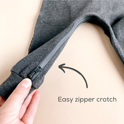 * These rompers fit big, size down if you want a normal romper fit. They are meant to be oversized and have a relaxed fit. These comfy neutral toned ribbed rompers are perfect for everyday wear and a must-have staple piece. These rompers feature a zipper crotch for easy on and off changes and the neckline has 3 functional buttons.